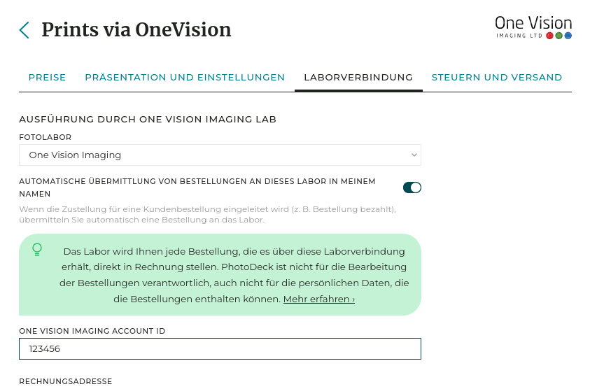 - Labore-Integrationen: WhiteWall, WHCC, und One Vision Imaging.